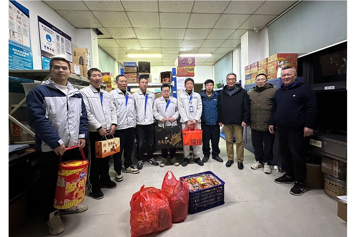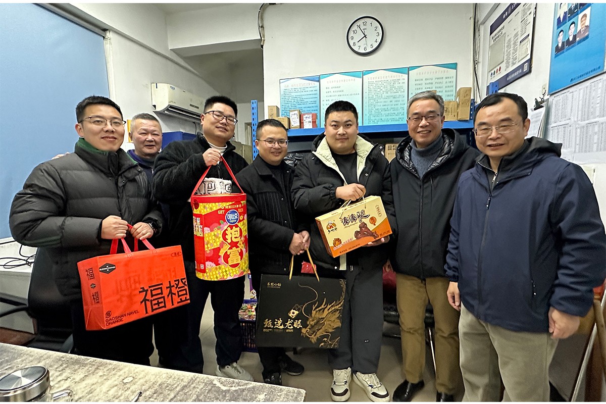 1月28日除夕夜,公司黨委書記、董事長張宇松,公司黨委副書記、工會主席吳天飛赴楊府原料廠區(qū)和制劑事業(yè)部慰問春節(jié)值守人員,為他們送上了慰問品及新春祝福。